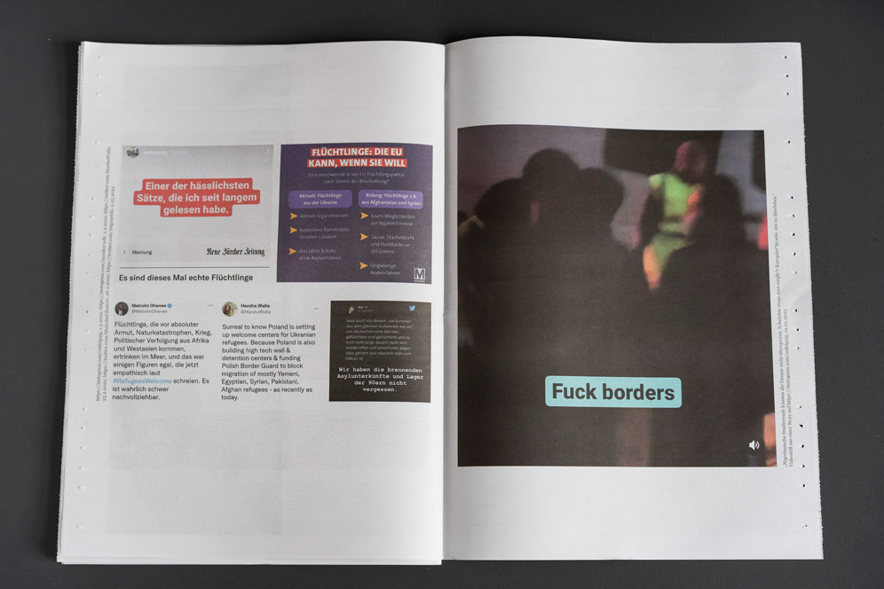 As we are preparing this newspaper for print, Putin has attacked Ukraine. Fortunately, this time the EU has decided to accept refugees without complications and allow them to continue studying and working. But when established newspapers like the New Zürcher Zeitung and black and exchange students of colour are treated as second-class refugees at the border or even sent back, it becomes frighteningly clear how racism - even in this emergency situation - is mobilised to deny people their basic rights. We must not accept this - at any border, in any law and in any encounter.