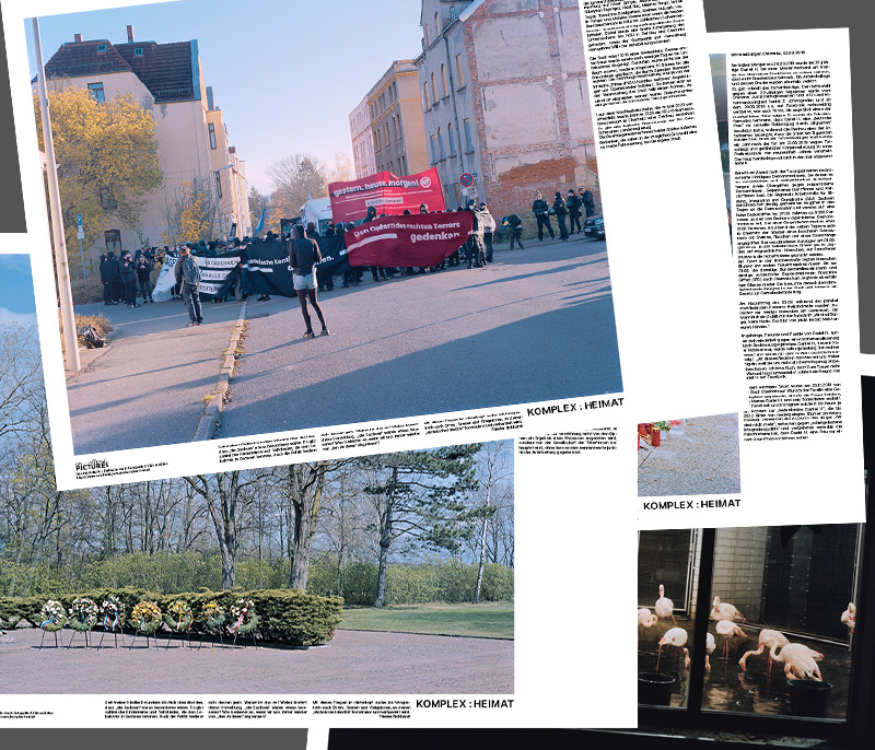 In many cases, it is about remembering history, as in the case of the mourning wreaths for the prisoners of war of the Wehrmacht in Zeithain or the reconstructed Frauenkirche in Dresden. In addition to such rather “silent” gestures and places, rituals such as an Easter procession of the Sorbs or even a multi-day reenactment of the Battle of the Nations near Leipzig can be seen. Frieder Bickhardt’s compilation of these identity-forming actions inevitably raises the question of who is acting here and with what unconscious or conscious intent. That no form of remembrance is neutral is perhaps particularly clear from the image of the flowers and funeral offerings for the victim of a stabbing in Chemnitz in September 2018. Within a few days, there was a massive xenophobic mobilization with hate mobs, Germany-wide political discussions, and the large concert as counter event depicted in another photo. The hashtag #wirsindmehr used for this already points to the fact that identity is also being struggled for here. Another picture shows an empty meadow on Frühlingsstraße in Zwickau – the place where Beate Zschäpe blew up her apartment building. The photo raises the question of how a city can live with and integrate into its local identity the fact that for years a terrorist group was able to hide here. This question has also become its own point of reference for the anti-fascist movement from Saxony.