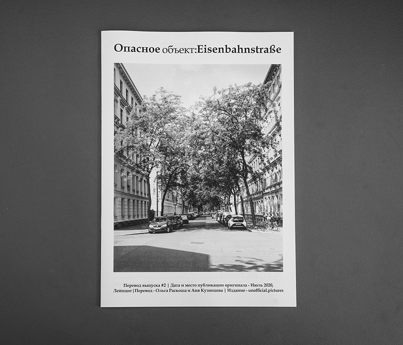 Лейпцигская Eisenbahnstraße? В СМИ полно расистских и классистских клише на ее счет. Словно официально утверждая стигматизацию улицы и ее жителей, правительство Саксонии ввело запрет на ношение оружия на этой территории в ноябре 2018 года. Наша реакция: бесит! Поэтому мы провели серию интервью житель_ниц района. Мы опубликовали эти интервью, прочие тексты и множество наших собственных фотографий в двух выпусках газеты «опасный объект: Eisenbahnstraße» („Gefährlicher Gegenstand: Eisenbahnstraße“), чтобы показать: Eisenbahnstraße — куда больше, чем ваши стереотипы! И ее проблемы не так легко объяснить, как это делают издания BILD и ProSieben.