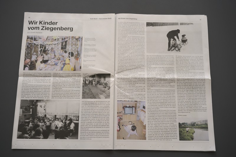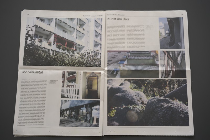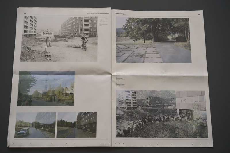 Warum eine Zeitung über Suhl-Nord? Wir vom Verein unofficial.pictures hatten den Eindruck, dass es viel zu erzählen gibt. Von Visionen, Aufbau, Realität und Alltag in einer Satellitenstadt. Von Entdichtung, Rückbau und Abriss. Von Umzügen, nochmal Umzügen und Wegzügen. Von Kindheitserinnerungen an Orte die es nicht mehr gibt. Von Nazis, die in den 1990er- und 2000er-Jahren Angst verbreitet haben. Von Migrant*innen, die hier angekommen sind. Wir finden es wichtig, all das nochmal aus den Hinterköpfen heraus zu holen und gemeinsam neu anzuschauen, um mit der aktuellen Situation umgehen zu können und auch in die Zukunft zu denken. Deswegen haben wir im Frühjahr ein umfangreiches Projekt zum Austausch über diese und andere Themen gestartet. Dank der Förderung durch den Fonds Soziokultur und die Heidehof Stiftung und mit Unterstützung vieler lokaler Vereine konnten wir im Juli ein Straßenfest zum Mitmachen veranstalten. Seitdem bekamen wir unzählige Fotos überlassen und Geschichten erzählt. Uns war wichtig, daraus etwas zu machen, was man in die Hand nehmen, gemeinsam anschauen und ins Bücherregal stellen kann. Und etwas, das viele Leute erreicht. Deswegen haben wir uns entschieden, dass es eine Zeitung zu Suhl-Nord geben soll.