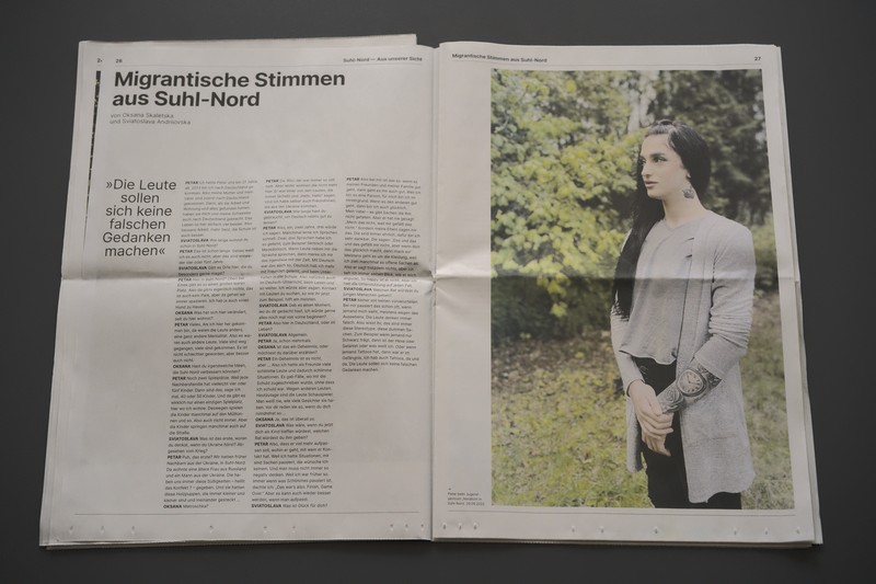 Hier ist sie nun: unsere erste Zeitung über und aus Suhl-Nord. Mit 2000 gedruckten Exemplaren und einer Online-Version. Darin stecken 48 Seiten mit 151 Bildern. Dahinter stecken 3 Monate intensive Workshopzeit und 4 Wochenendtreffen mit den 8 Autor*innen. 11 ehemalige und gegenwärtige Bewohner*innen, die uns ihre alten Fotos sowie 2 Texte zur Verfügung gestellt haben haben.